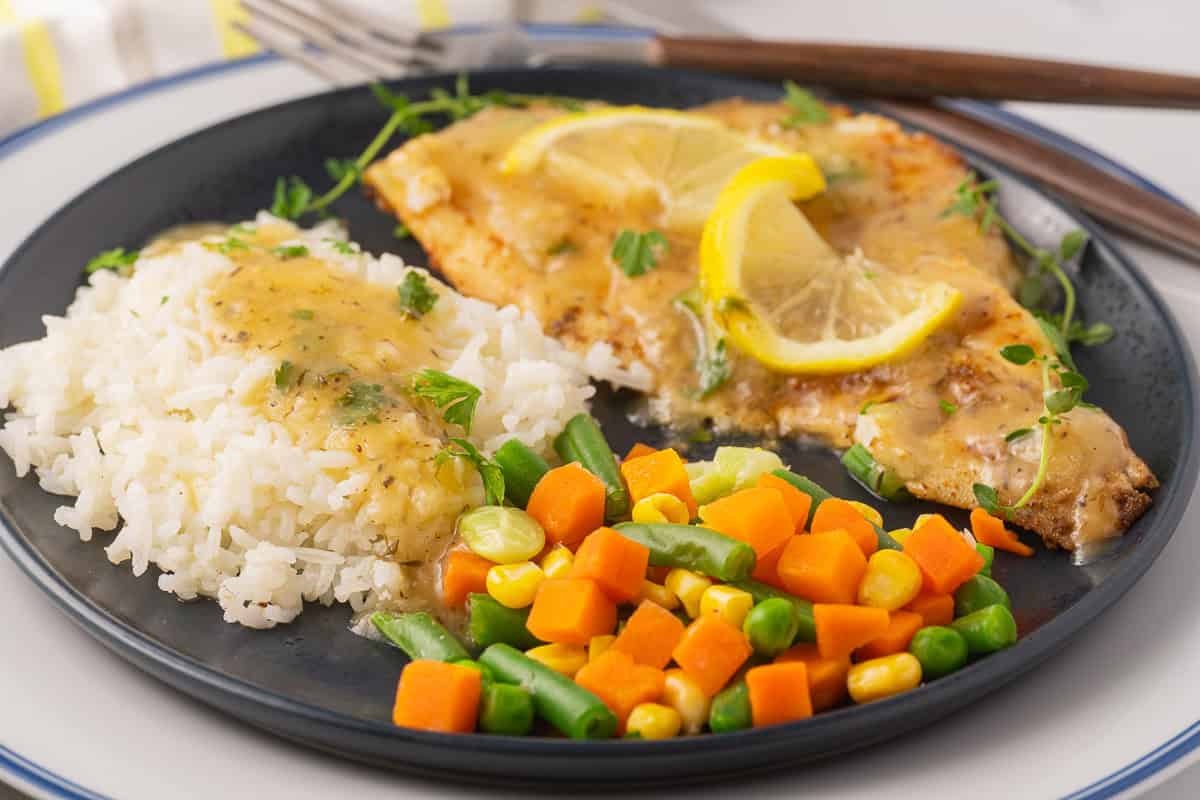 We eat this mild fish pretty often and always with some type of sauce. This is a lightened up version of Flounder Francaise by just lightly pan frying with a seasoning coating instead of the classic way of dredging in flour.
