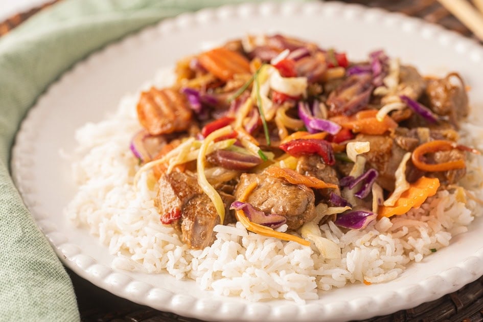 If you like recipes similar to General Tso Beef, then you will also enjoy the Kung Pao Pork. It is only a little bit spicier and you can adjust that with more or less chili peppers. Pork Tenderloin stir fry and Mongolian Pork are less spicy but also very flavorful.